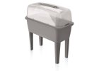 Moderní plastový květináč na nožičkách se základním samozavlažovacím systémem.