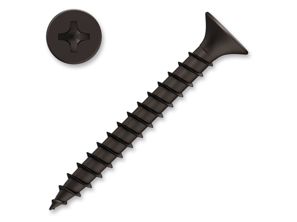 Šroub TX s hrubým závitem se používá na připevňování sádrokartonových desek na dřevěnou konstrukci.