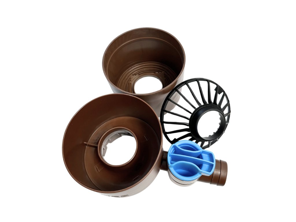Kohoutek lze podle potřeby otevřít nebo zavřít – takže můžete snadno ovládat, zda voda teče do sudu či nikoliv. Ideální pro zahrady, chaty, ekologické domácnosti a každého, kdo chce šetřit pitnou vodou a využívat dešťovku. Celá sada je vyrobena z odolného plastu v neutrální tmavě hnědé barvě, která nenaruší vzhled vaší fasády ani zahrady.