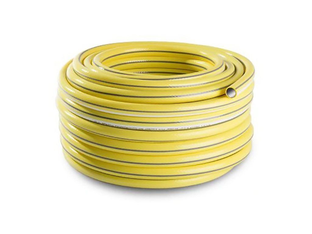 Žlutá zahradní hadice PREMIUM PLUS je vybavena 4 vrstvami z pružného PVC a navíc vyztužena textilním spirálovým opletem. Jedná se o druh hadice se zvýšenou těsností a odolností vůči delaminaci (oddělení vnitřních vrstev materiálu). Lze ji využít pro zavlažování zahrad a zemědělských půd.