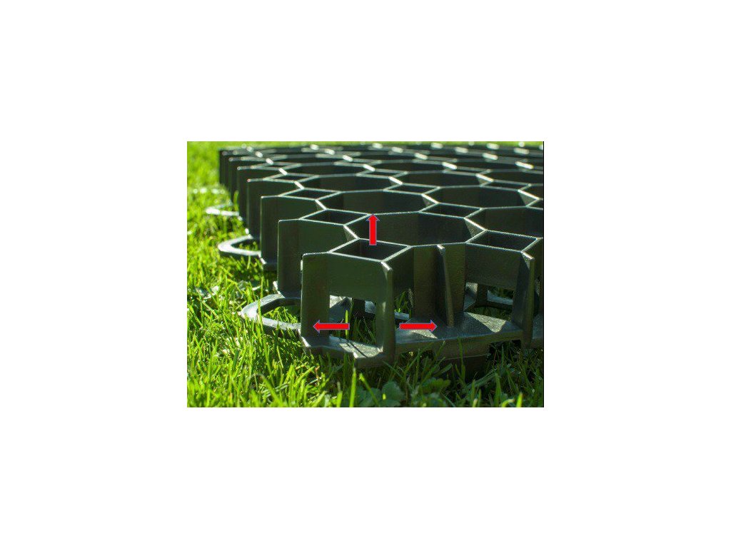 Zatravňovací dlažba PROFI Garden v zelené barvě nabízí moderní řešení pro zpevnění ploch při zachování maximální propustnosti vody a přirozeného vzhledu. Díky robustní konstrukci s výškou 6,4 cm je vhodná pro zatěžované plochy jako jsou příjezdové cesty, parkovací stání, zahradní cesty nebo plochy kolem bazénů. Umožňuje prorůstání trávy a tím nenarušuje estetiku prostředí.