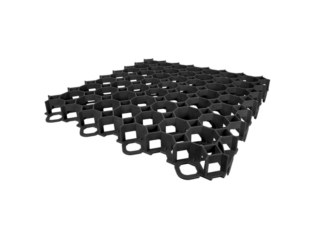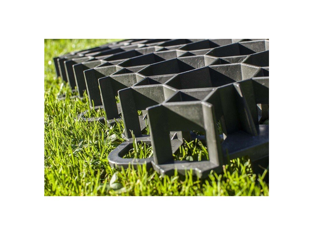 Zatravňovací dlažba PROFI Garden v černé barvě nabízí moderní řešení pro zpevnění ploch při zachování maximální propustnosti vody a přirozeného vzhledu. Díky robustní konstrukci s výškou 7,3 cm je vhodná pro zatěžované plochy jako jsou příjezdové cesty, parkovací stání, zahradní cesty nebo plochy kolem bazénů. Umožňuje prorůstání trávy a tím nenarušuje estetiku prostředí.